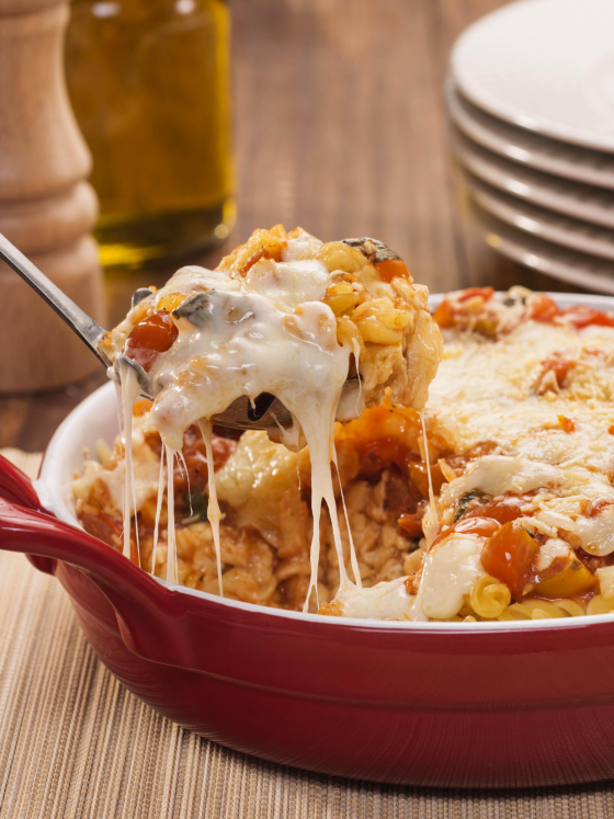 Receitas fáceis de como fazer Macarronada de Forno, Parafuso com tomate cereja e manjericão gratinado e Penne Speciale com legumes e frango